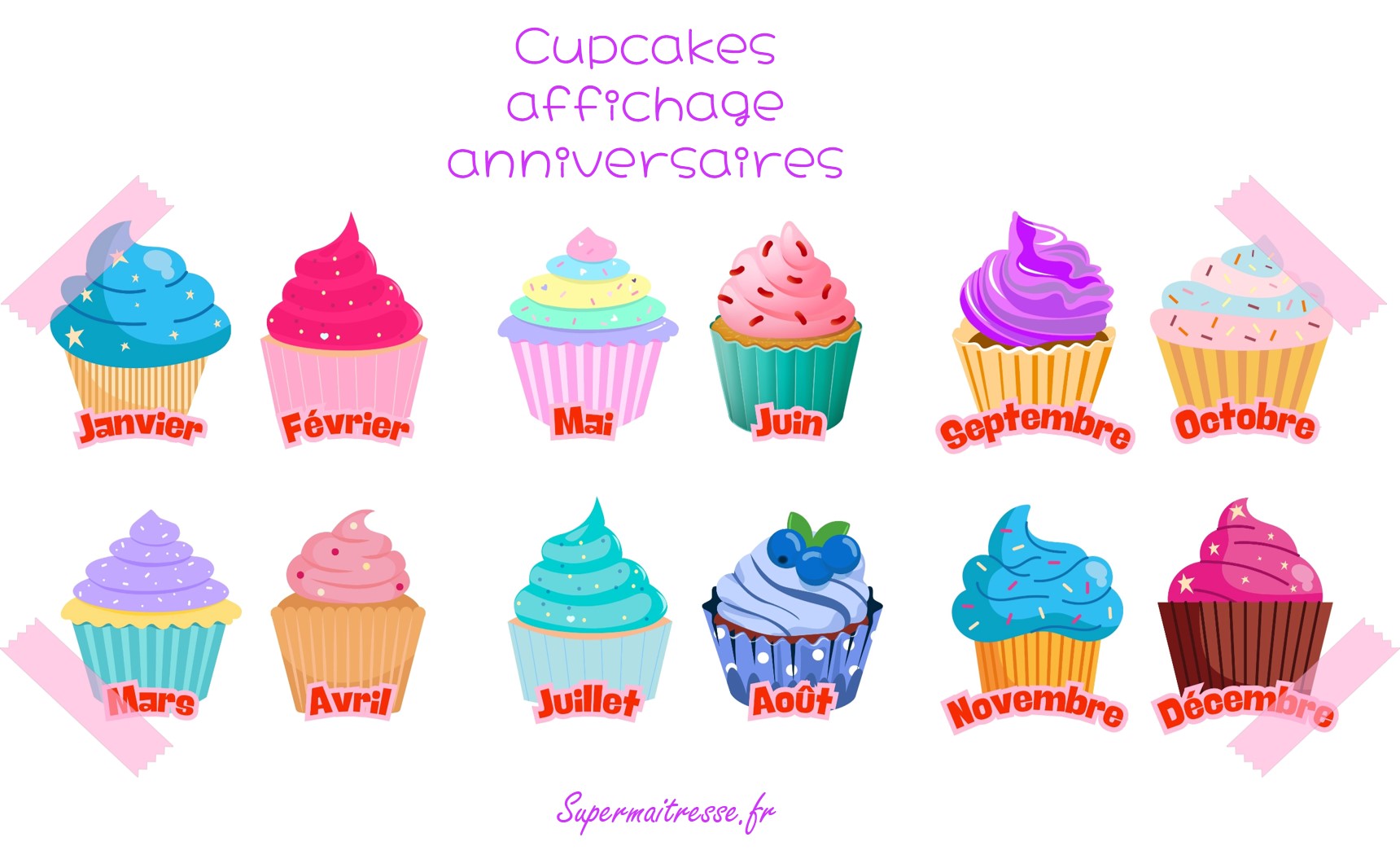 J’avais fait il y a quelques années mes propres cupcakes anniversaire. Je les partage aujourd’hui. Pour fêter l’anniversaire des élèves, j’accrochais un ballon à la chaise de bureau le jour J et je leur offrais un stylo magique. Ils étaient ravis !