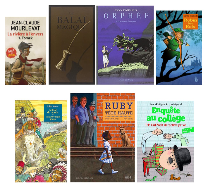 En littérature, je vais travailler le plus souvent possible sur un roman ou un album commun, avec une différenciation sur les fiches, les consignes ou les attendus. J’ai élaboré un ouvrage avec le déroulement et les fiches-élèves (sans questionnaire vide de sens qui paraphrase le texte) regroupant 7 oeuvres littéraires, conformément aux programmes de CM2. Pour les élèves plus fragiles, je rajouterai des outils d’aide pour différencier, puisqu’il y a des pistes possibles de différenciation dans l’ouvrage. Pour chaque oeuvre, je fais un focus sur l’un des thèmes au programme : héros & héroïnes, la morale en question, se confronter au merveilleux ou à l’étrange, vivre des aventures, se découvrir & s’affirmer dans le rapport aux autres. Les œuvres choisies permettent de travailler sur différents genres littéraires : le conte merveilleux, le conte moderne, la fiction historique, la nouvelle policière, le roman d’aventures et le récit fantastique. Les oeuvres apparaissent en couverture. Plus de précisions sur The littérature 2 ici : CLIC
