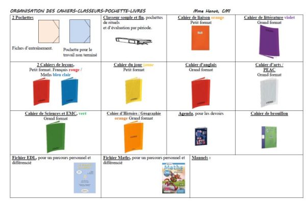 Je suis consciente que ça fera beaucoup de cahiers, mais ça prendra toujours moins de place que les gros classeurs que les parents achètent toujours trop gros, avec des fiches qui se déchirent. Et puis bon, quand je regarde les programmes, je me dis qu’il y a tellement de matières à travailler, que c’est normal qu’il y ait tant de cahiers !