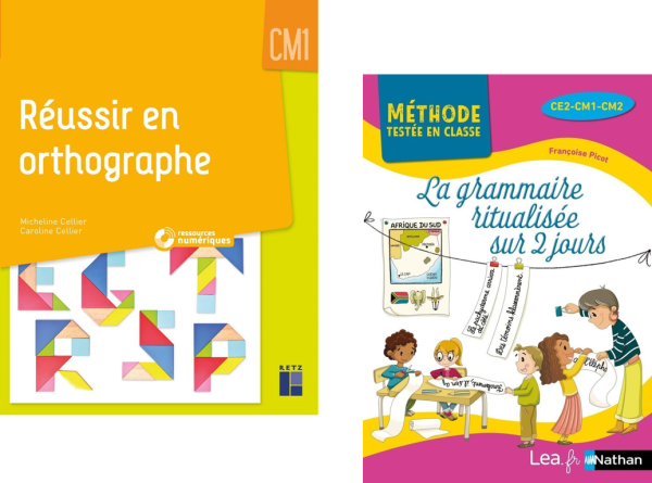 En dictée, je pars sur Réussir en orthographe de Micheline Cellier. Il y a tout un travail sur les régularités et l’orthographe grammaticale avec des rituels très construits et surtout des mots basés sur la fréquence lexicale. Même si c’est CM1, il y a largement de quoi faire en CM2 !