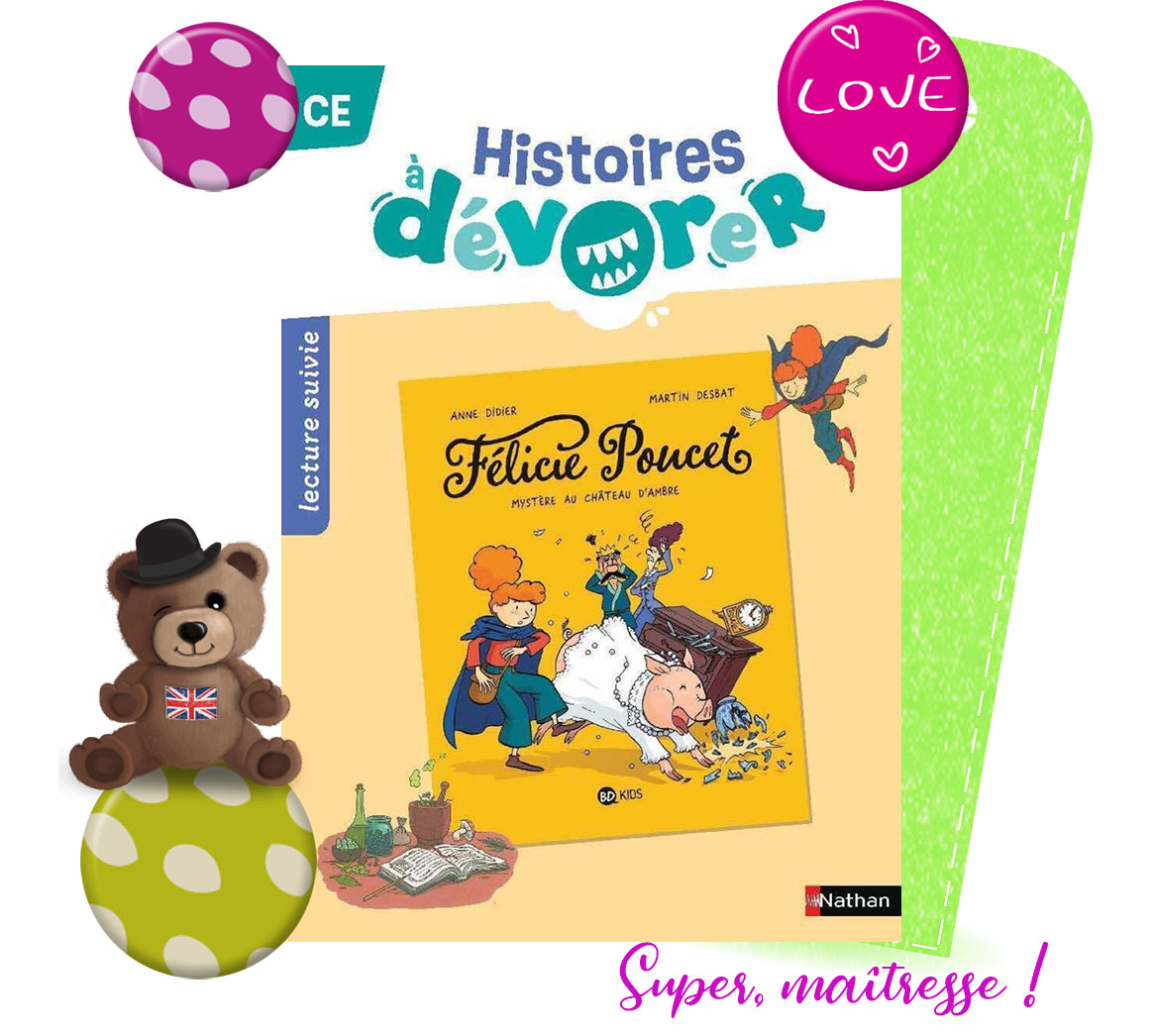 –Utiliser la transmédiation : passer par le cinéma, les séries ou la bande dessinée comme portes d’entrée pour revenir ensuite au texte long. J’avais remarqué cette tendance chez mes élèves garçons à dévorer les BD sans qu’ils en aient forcément tous les codes et avec leurs nombreux implicites. Voilà pourquoi dès le cycle 2, je propose l’étude de BD avec Félicie Poucet (CE1-CE2) puis Enola Holmes (CM1-CM2).