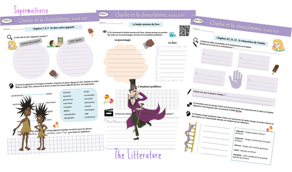 En littérature, je vais travailler le plus souvent possible sur un roman ou un album. J’ai élaboré un ouvrage avec le déroulement et les fiches-élèves regroupant 7 oeuvres littéraires, conformément aux programmes de CM1. Pour chaque oeuvre, je fais un focus sur l’un des thèmes au programme : héros & héroïnes, la morale en question, se confronter au merveilleux ou à l’étrange, vivre des aventures, se découvrir & s’affirmer dans le rapport aux autres. Les œuvres choisies permettent de travailler sur différents genres littéraires : le conte merveilleux, le conte moderne, la fiction historique, la nouvelle policière, le roman d’aventures et le récit fantastique. . Plus de précisions sur The littérature ici : CLIC
