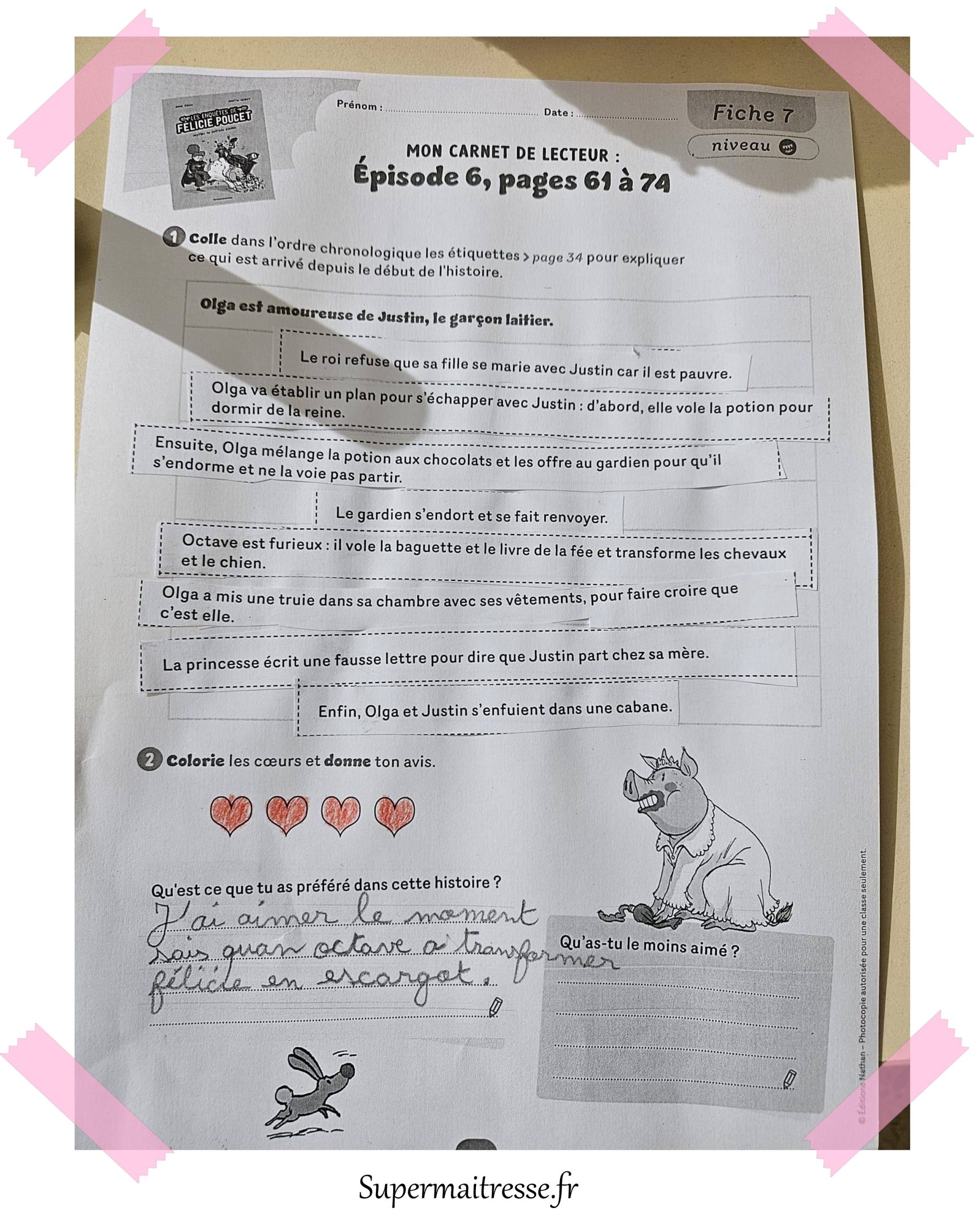 Carnet de lecteur CE1, production brute non corrigée, Classe de Julie Niros, La Gaude